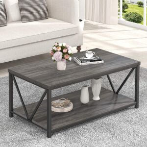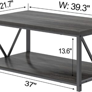 Coffee Table with Storage, Modern Small Center Tables for Small Spaces, Rustic Wood and Metal Cocktail Table for Living Room, 39.3 Inch Dark Gray