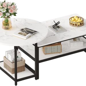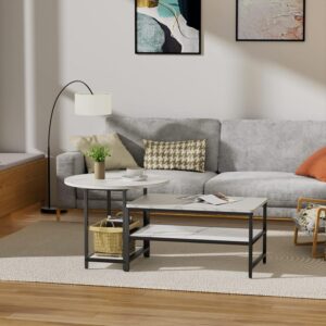 Coffee Table, White Modern Coffee Tables for Living Room, Detachable 2 Small Coffee Tables, Faux White Marble