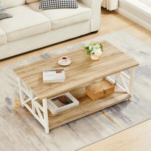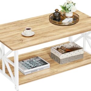 Coffee Table – Modern Coffee Tables with Storage for Living Room Shelf 2 Tiers, Farmhouse Coffee Table Set