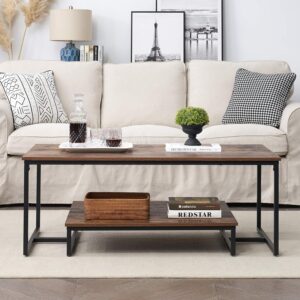 Coffee Table, Mid Century Modern Coffee Table for Living Room Rustic Farmhouse Center Table 2 in 1Detachable Table Set, Rustic Brown