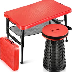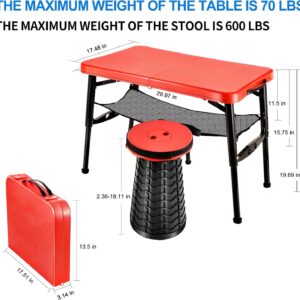 Retractable Small Folding Table and Stool Set, Portable Camping Foldable Table Lightweight Yet More Sturdy with Adjustable Stool for Outdoor Picnic, Beach, Camp, Also Ideal as Laptop Bed Desk
