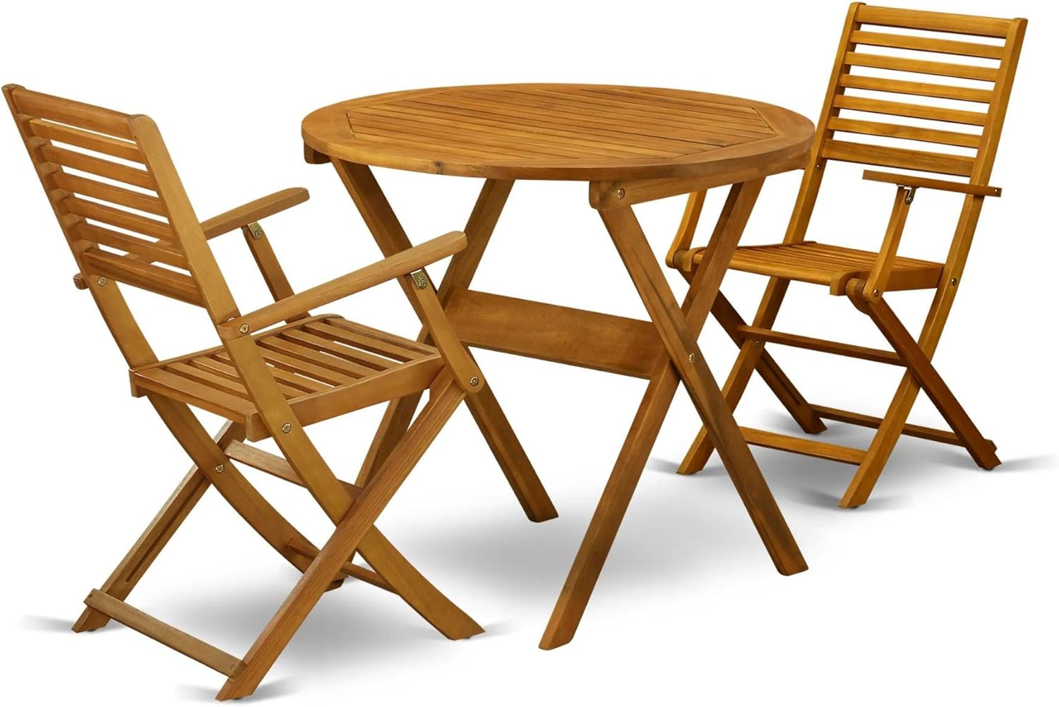 DINING SET FINISH: With its Natural Oil finish round table top and Wooden X-Style Legs, this dining table offers a convenient folding feature. The accompanying outdoor camping chairs feature comfortable seats and Wooden Legs that are also finished with Natural Oil. Carefully designed with a high-quality color combination, our outdoor table set adds a touch of elegance to any garden. It is the perfect choice for enhancing your outdoor space.