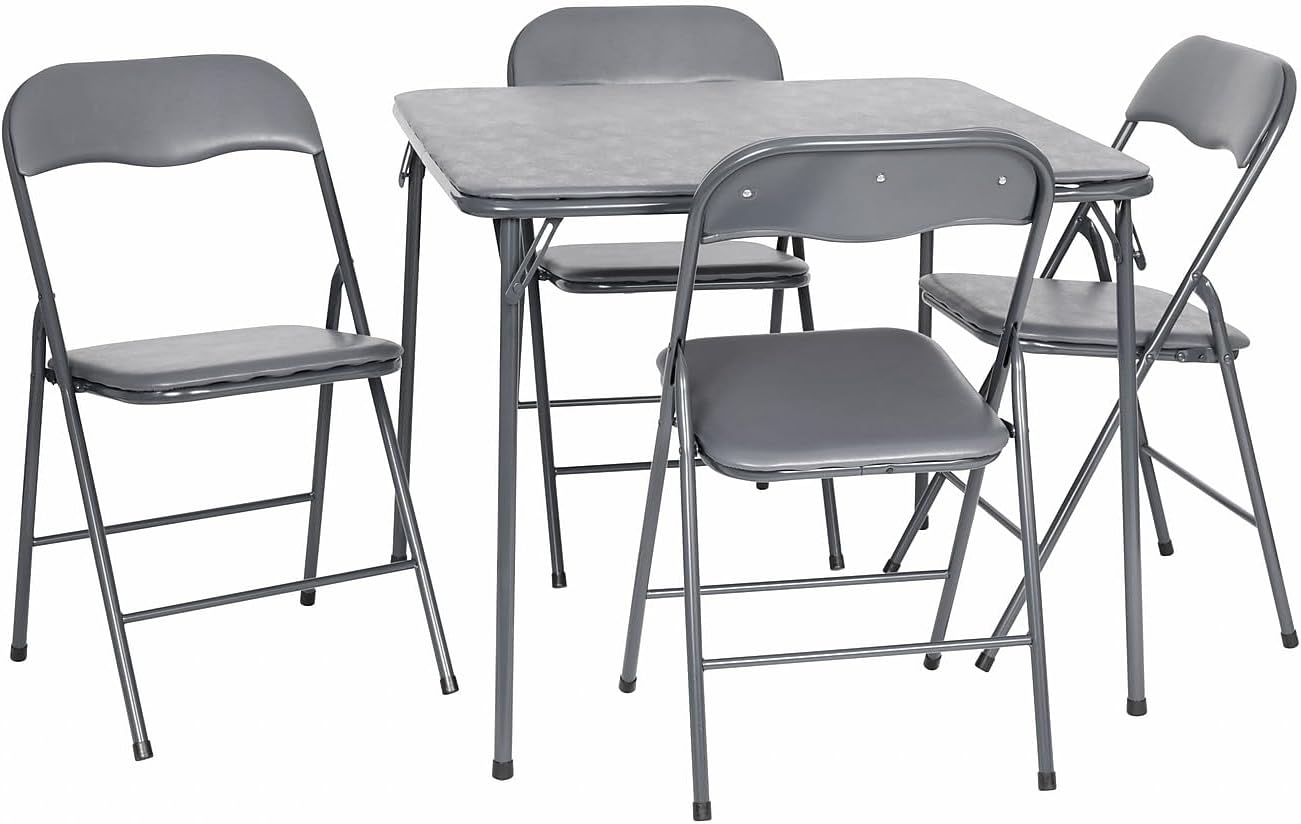 5-Piece Folding Card Table and Chairs Set, Portable Event Table and Chairs Set for Indoor and Outdoor Gatherings, Gray