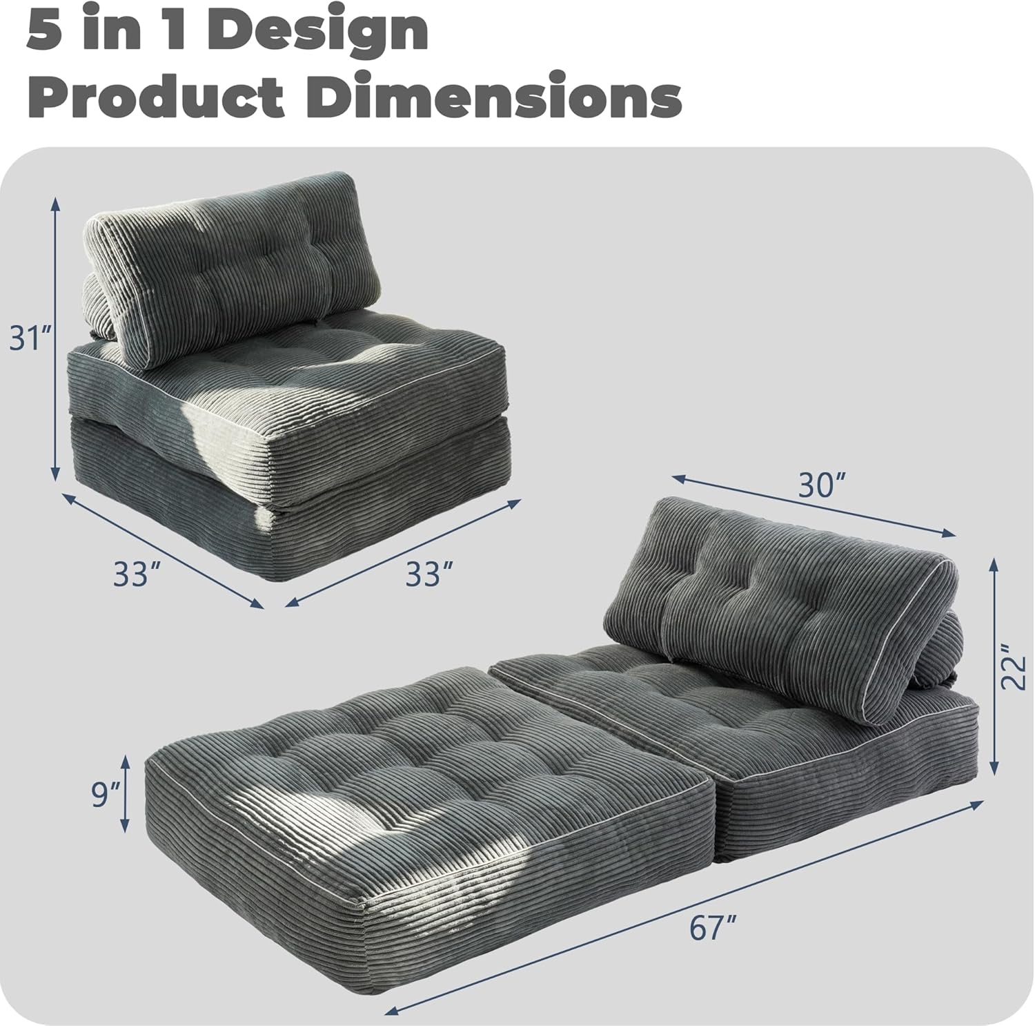 Premium Corduroy Comfort:Crafted with high-quality corduroy, this futon mattress combine softness with durability. Designed to retain its shape, the Folding Sofa Bed provides consistent comfort whether used as a bean bag sofa, bed, or lounge sofa chair. Its filling ensures optimal support. The materials guarantee long-lasting use, making this an ideal choice for those seeking a blend of elegance and practicality