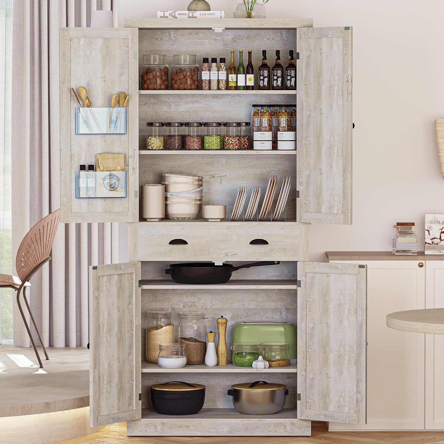 • Easy to Assemble: The instruction is very detailed and easy to read, and even inexperienced people can quickly complete the installation. Pantry cabinet in one box, no worry about waiting for the second box